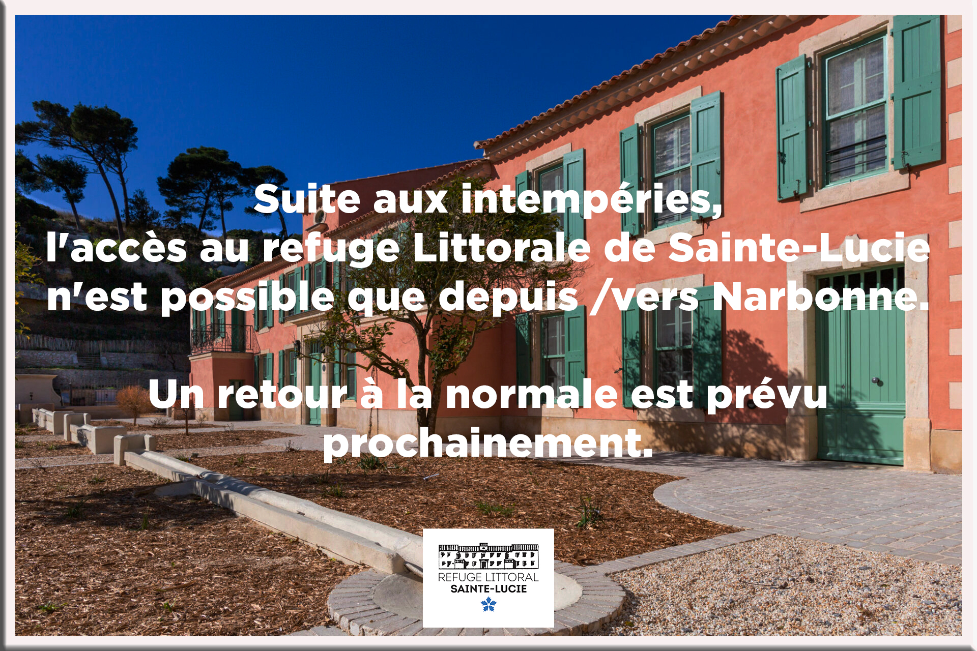 Le refuge littoral Sainte-Lucie reste ouvert et accessible même en cas de fermeture de l'île pour risque d'incendie, nous contacter au 06.07.41.19.32